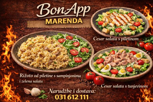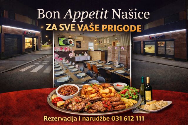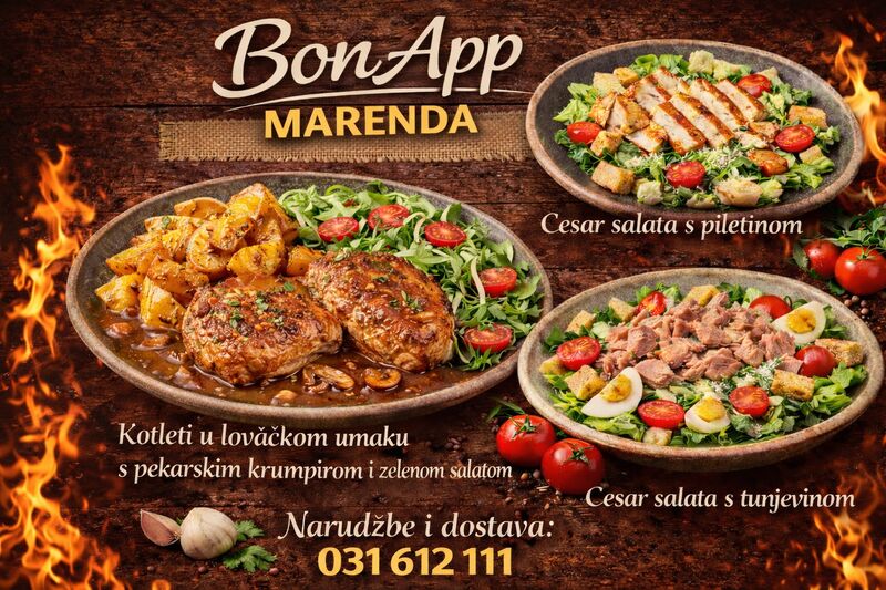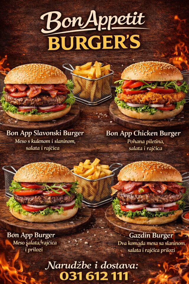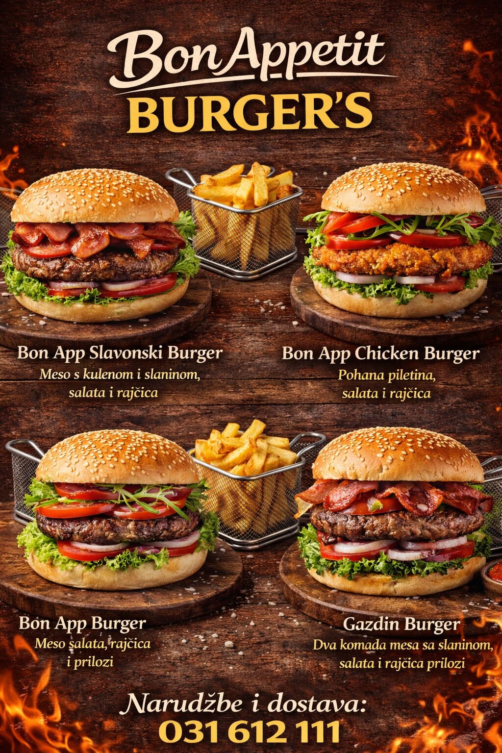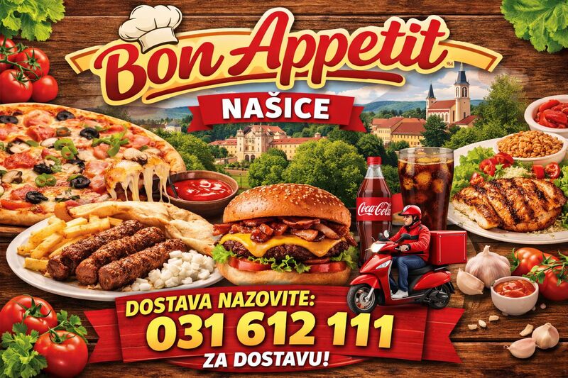 Ekipa Bon Appetit kuha za Vas, uz najveći izbor finih jela s preko 40 vrsta pizza , jela s roštilja , zapečeni grah , pohana jela, tjestenine, tortilje, kebab, lignje i oslić i još punooo fine papice.