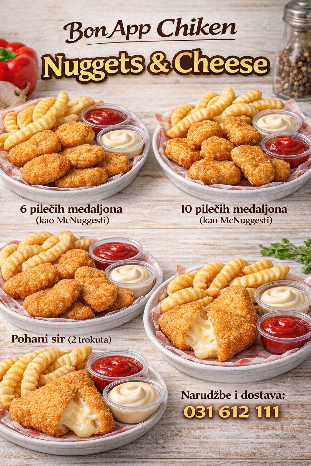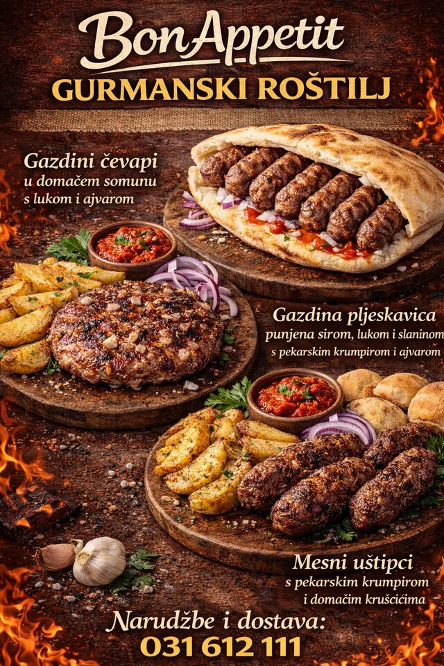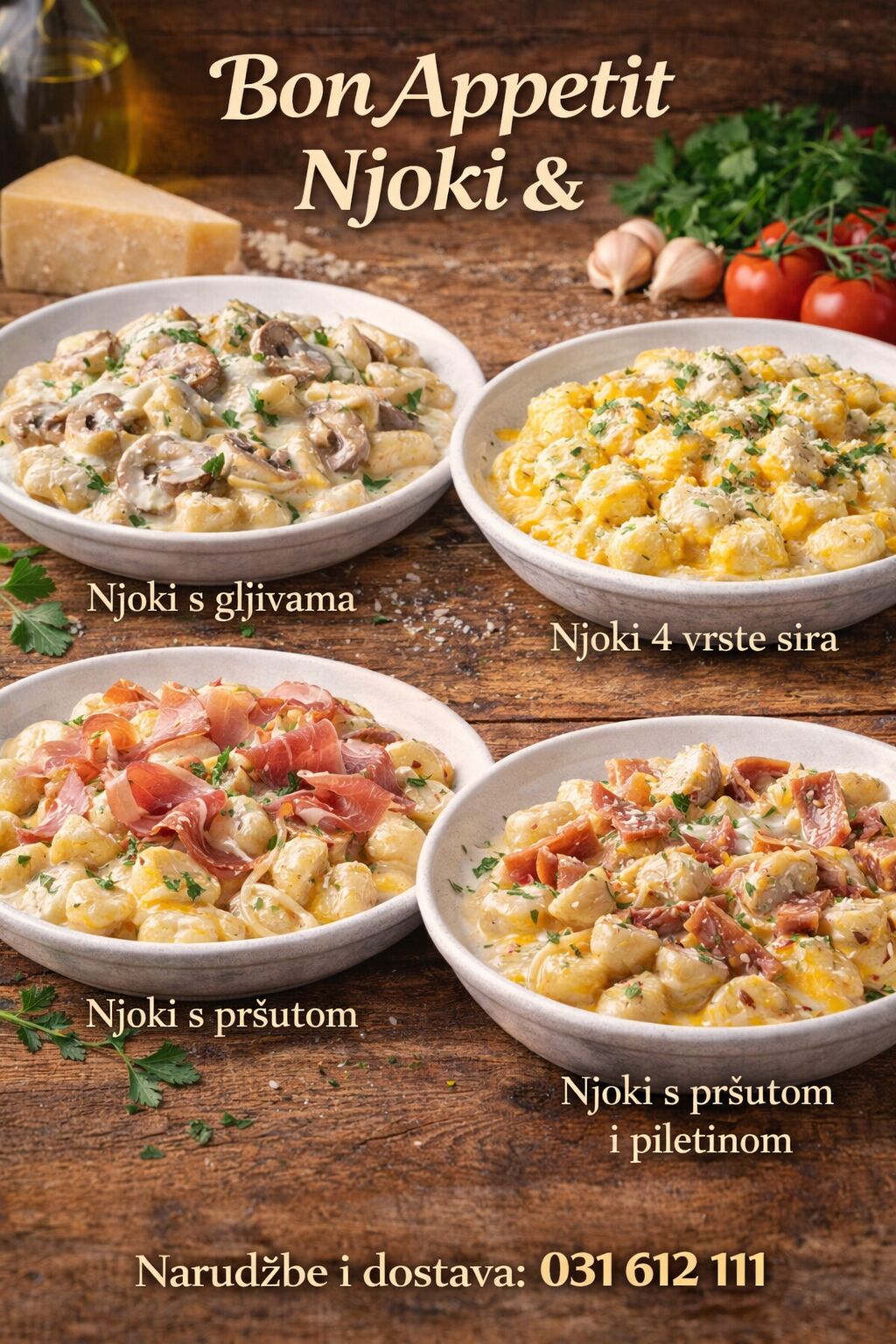 Ekipa Bon Appetit kuha za Vas, uz najveći izbor finih jela s preko 40 vrsta pizza , jela s roštilja , zapečeni grah , pohana jela, tjestenine, tortilje, kebab, lignje i oslić i još punooo fine papice.